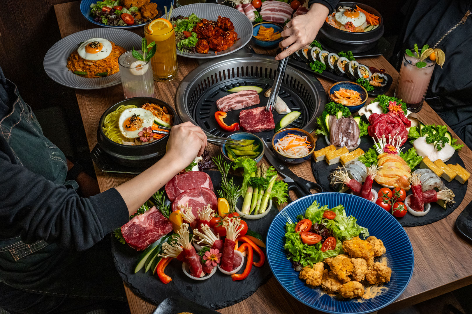 Bei uns steht das gemeinsame Genießen im Mittelpunkt. Unsere Tische sind mit integrierten Grills und Hotpots ausgestattet, sodass Sie Ihr Essen direkt am Tisch zubereiten können. Ob saftiges Iberico-Schweinefleisch, zartes Roastbeef, frischer Tofu, Garnelen oder Oktopus – Sie wählen Ihre Favoriten und erleben ein interaktives Kochvergnügen wie beim Best kKorean BBQ in Karlsruhe.